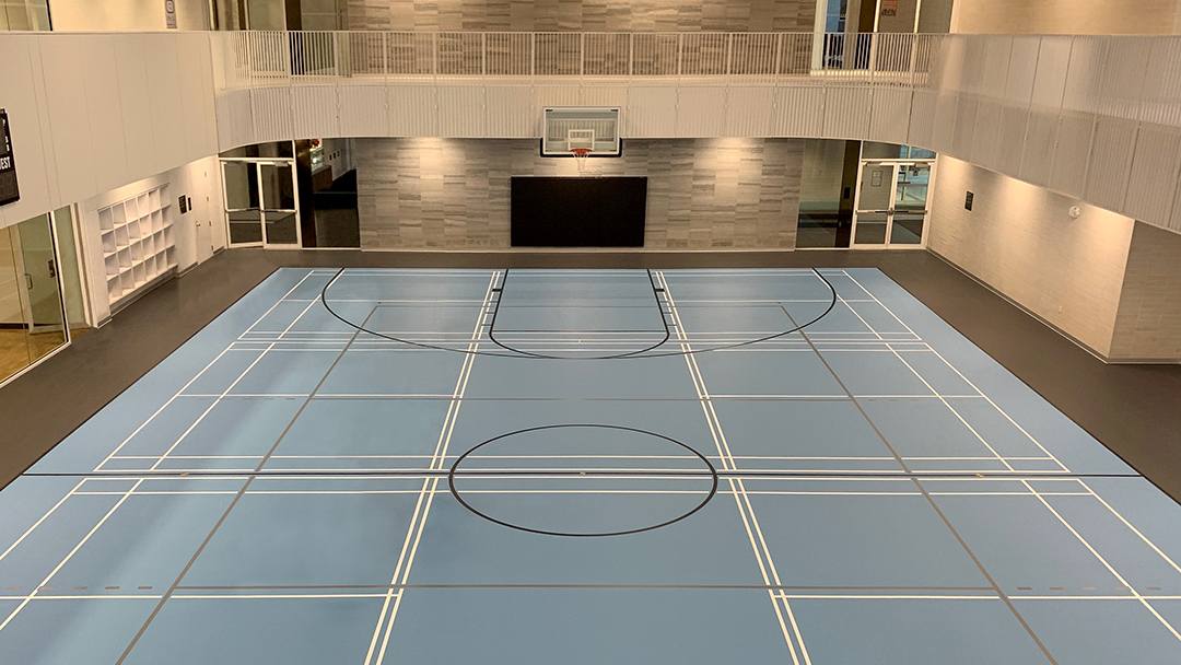 The project included the installation of a 4,200 square foot gymnasium and a 2,600 square foot indoor walking track, requiring a durable and accessible flooring solution compatible with mobility aids.