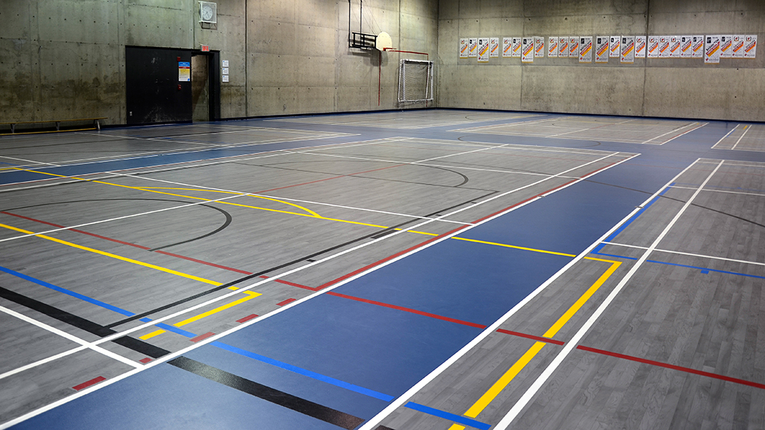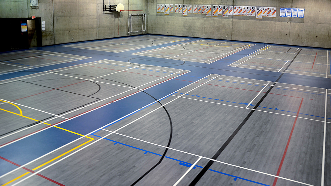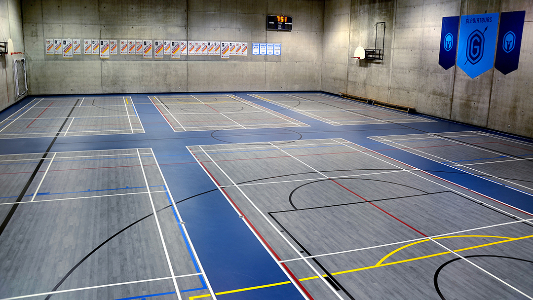 Located in Dollard-des-Ormeaux, Collège Gérald-Godin sits directly adjacent to a river. Following a flooding event, water invaded the basement gymnasium, completely destroying the existing sports flooring.