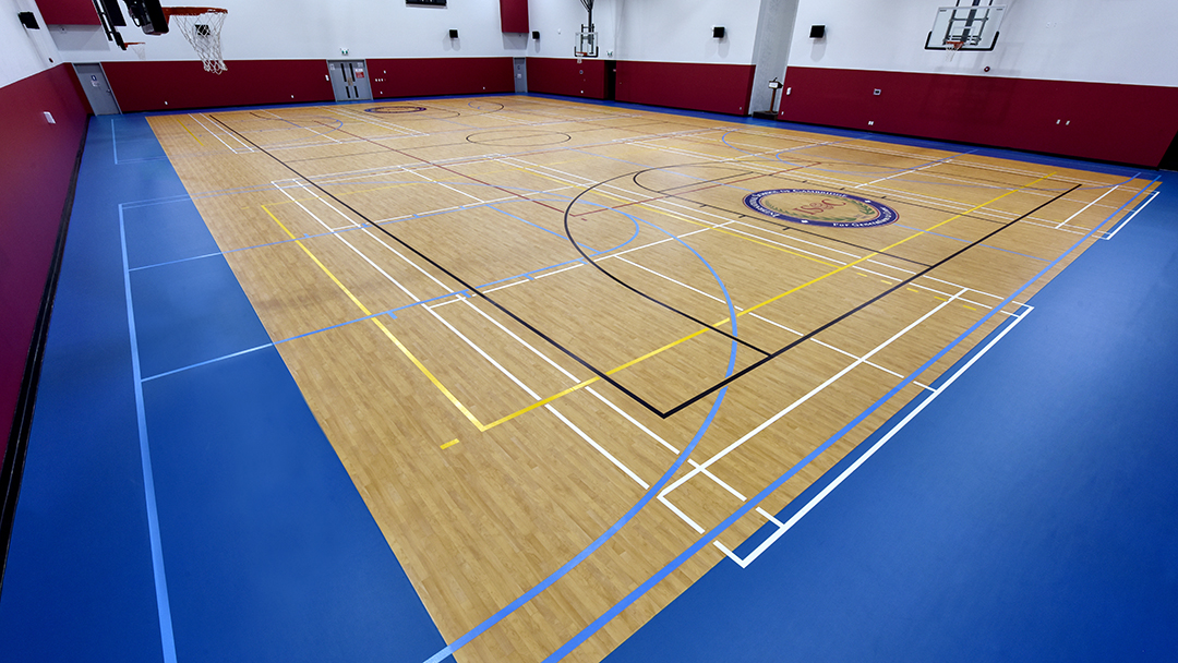 The project delivered a high-performance gymnasium meeting both athletic and acoustic requirements.