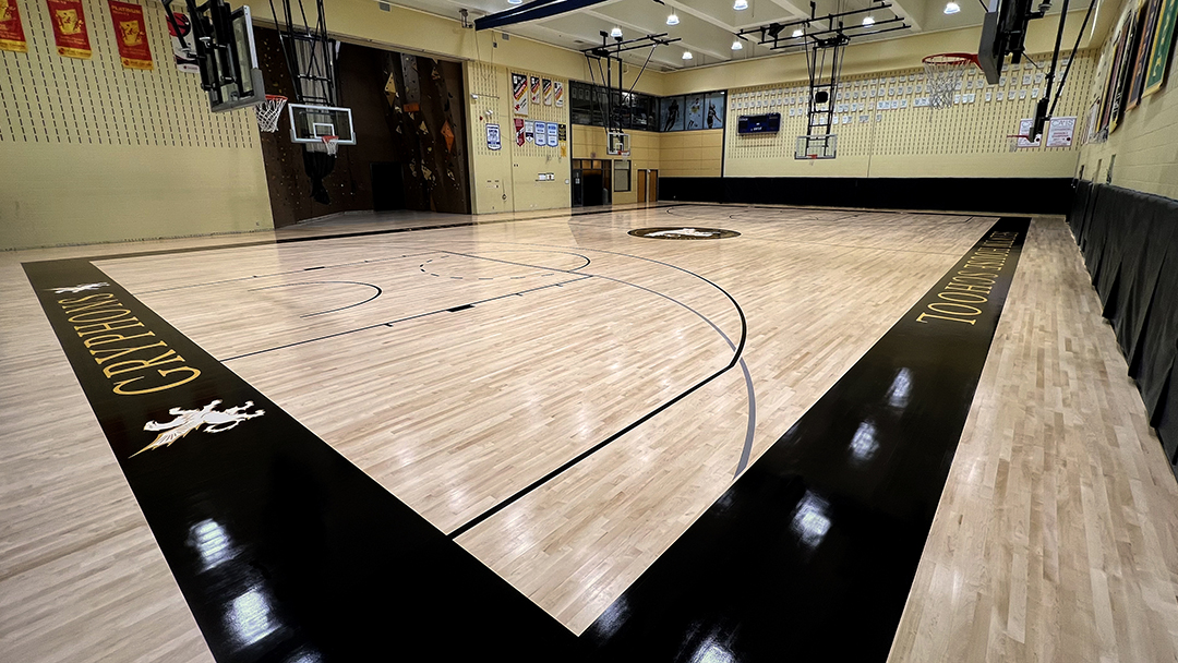 The gymnasium now features a durable, high-performance hardwood surface aligned with the school’s athletic standards.